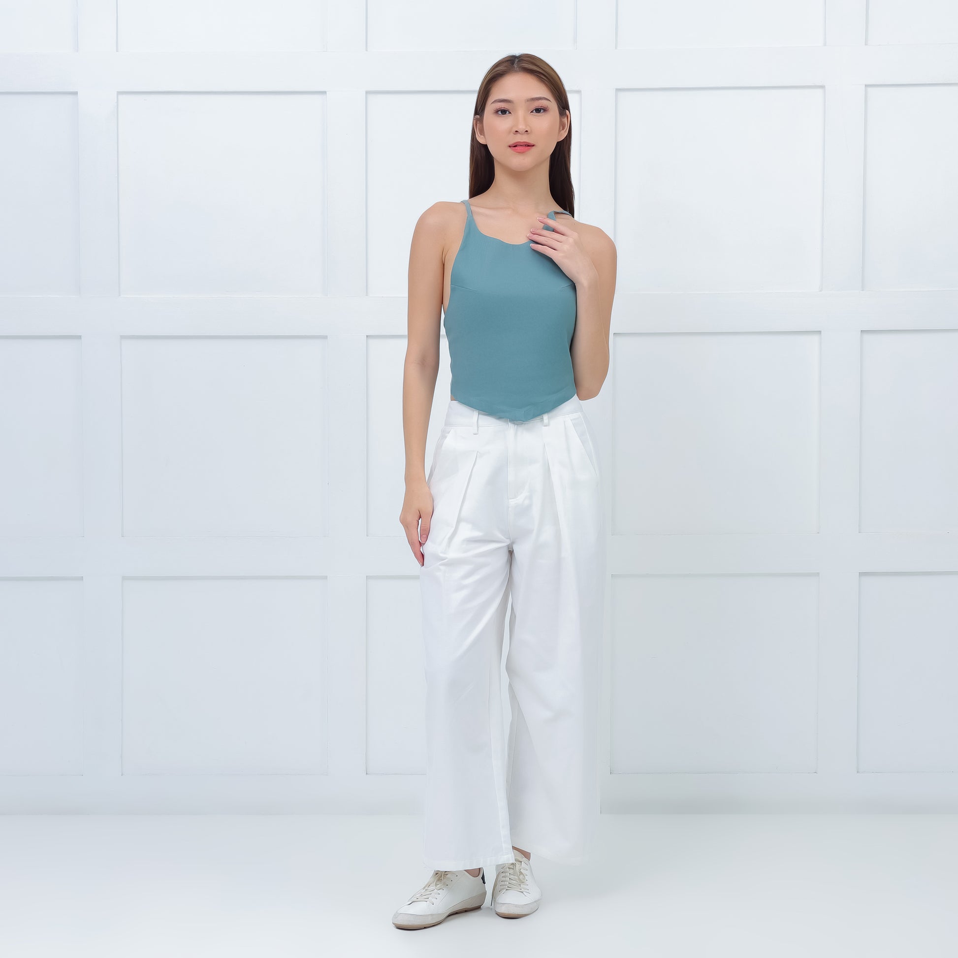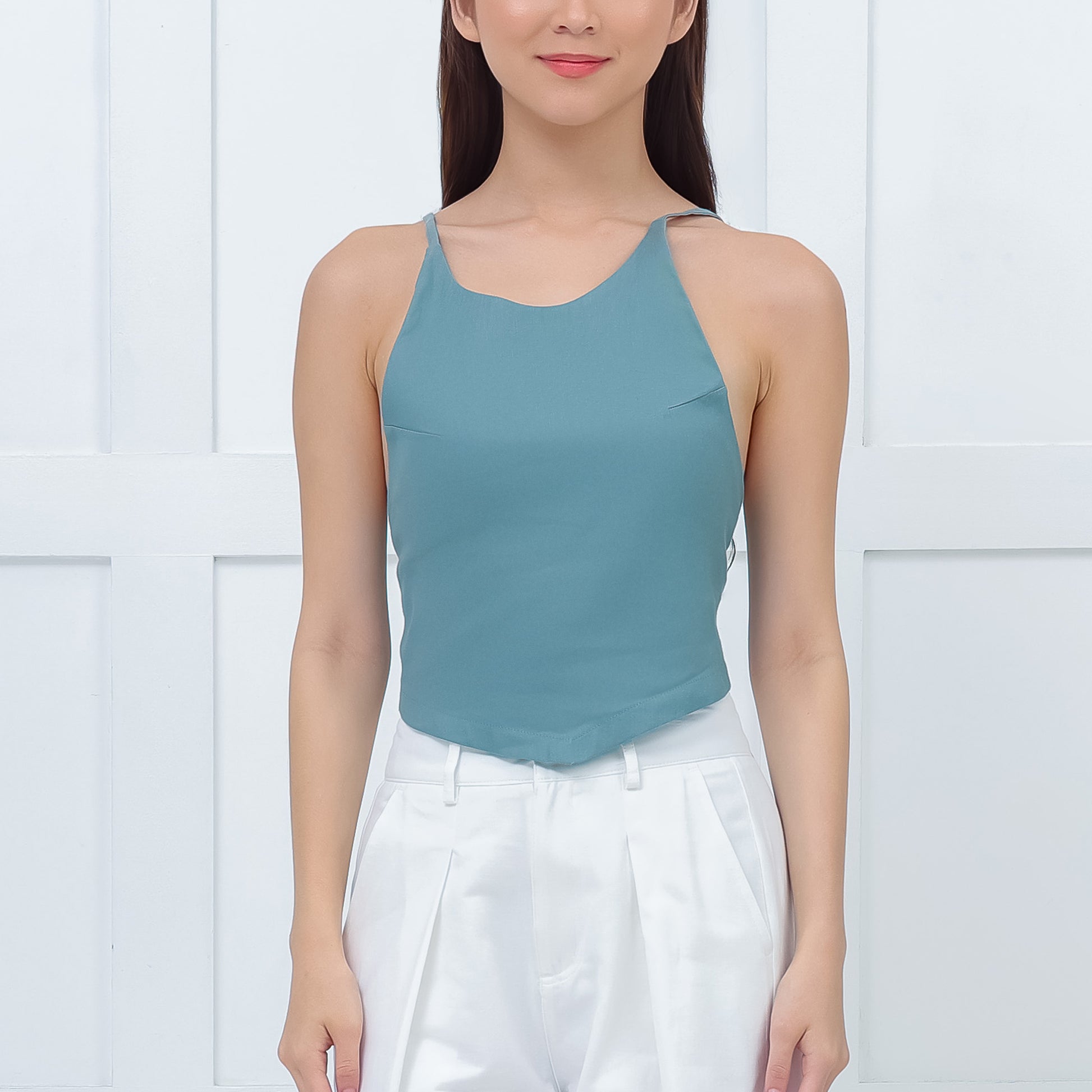 Backless top. Back smocked. Straps tied at the back. With facing.