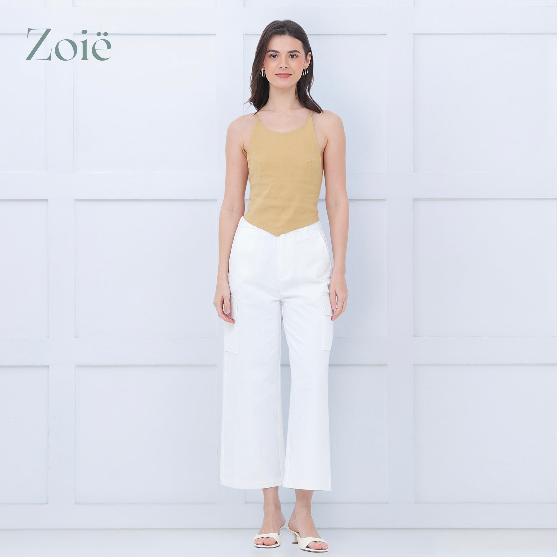 Backless top. Back smocked. Straps tied at the back. With facing.