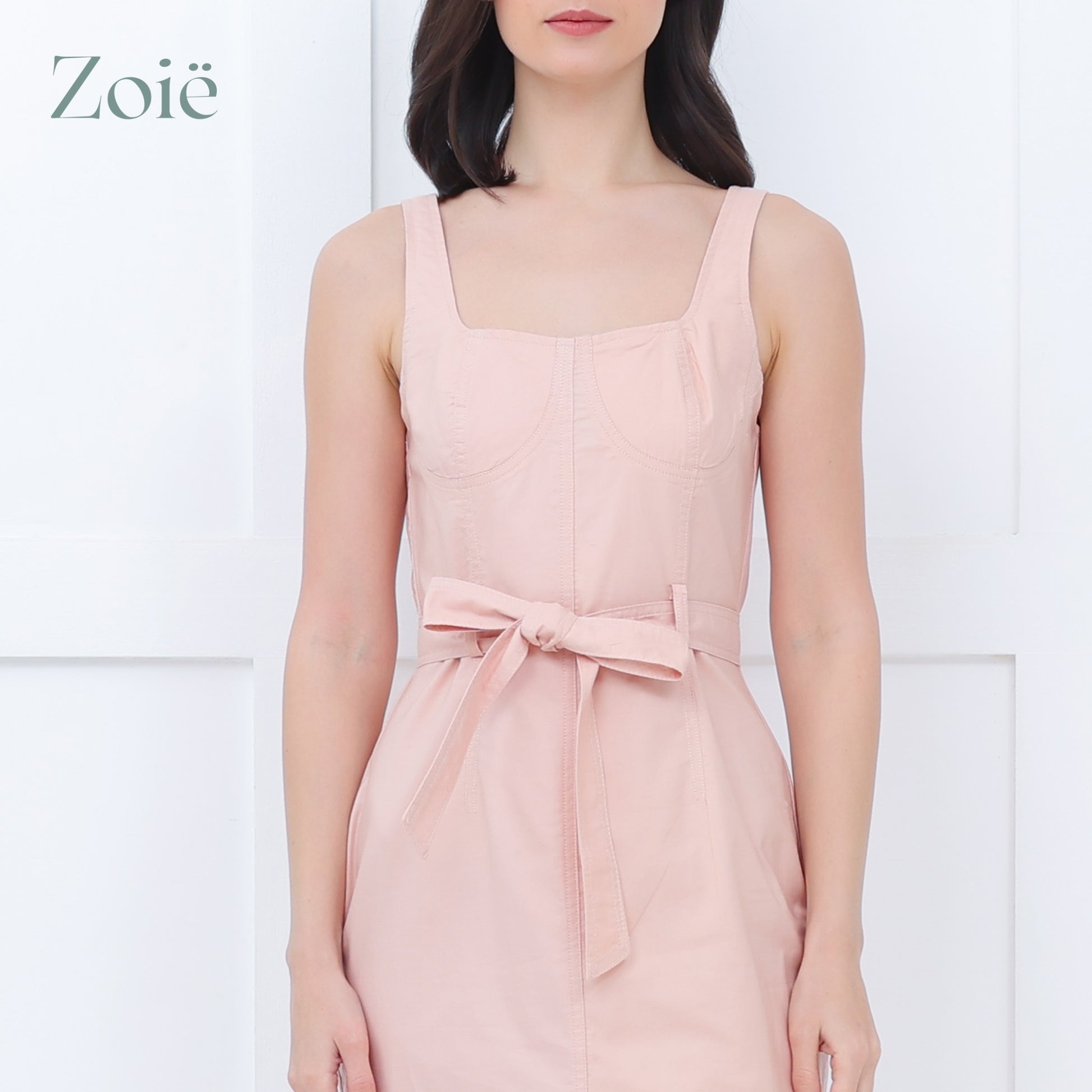 Sleeveless dress bustier chest. Side pockets & waist tie.
