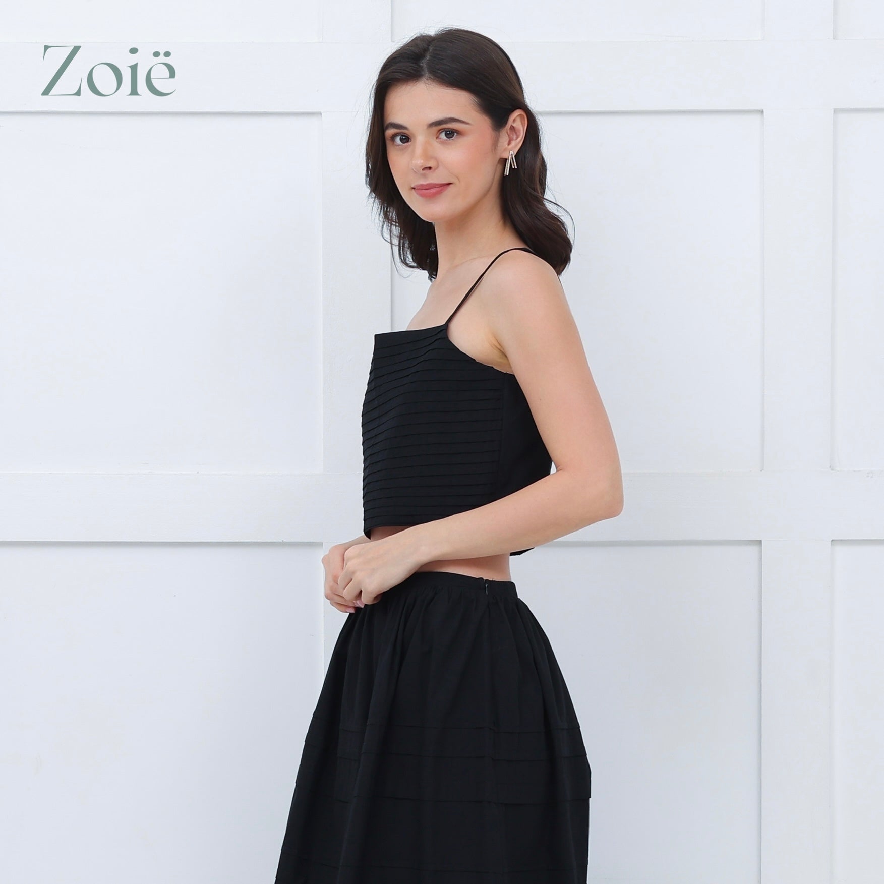 Spaghetti straps pleated top. Smocked center back. Adjustable straps.
