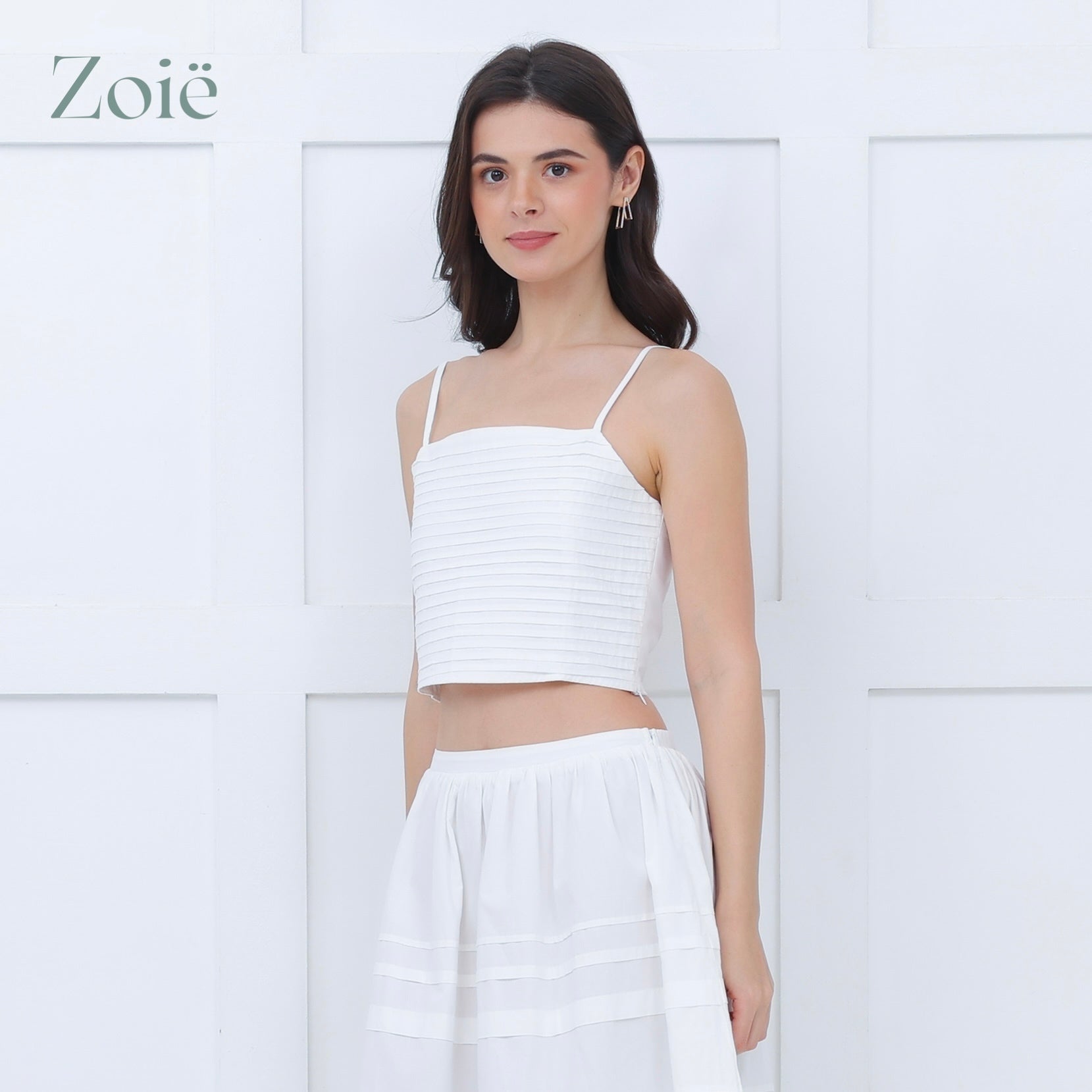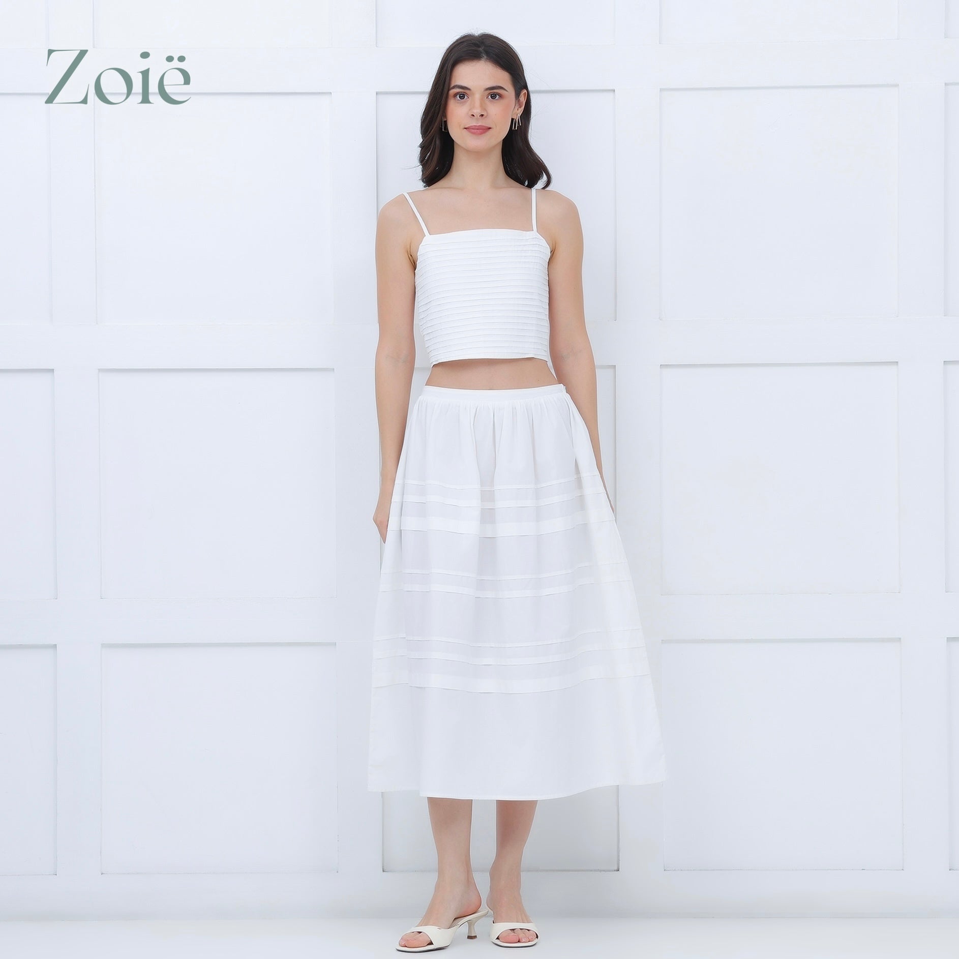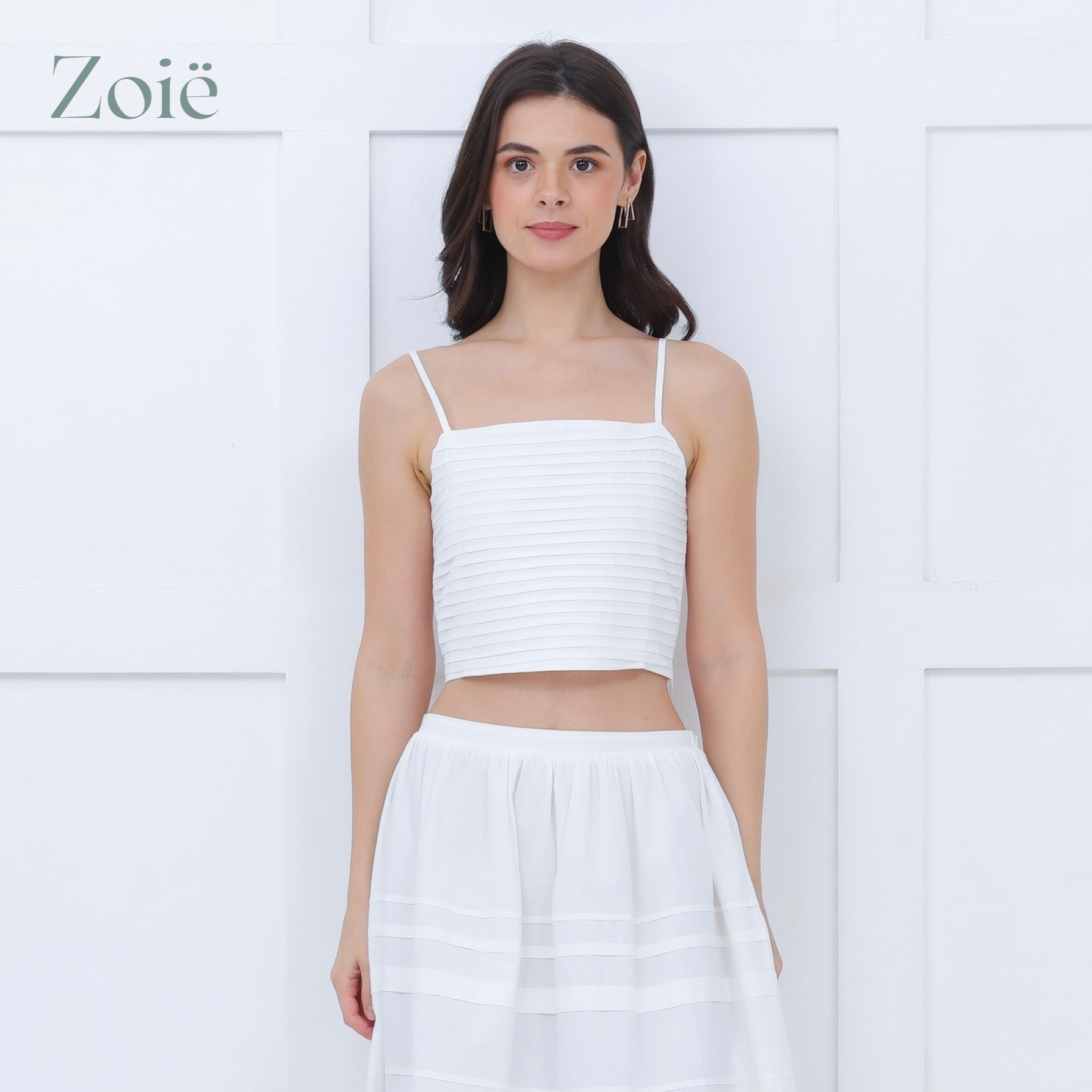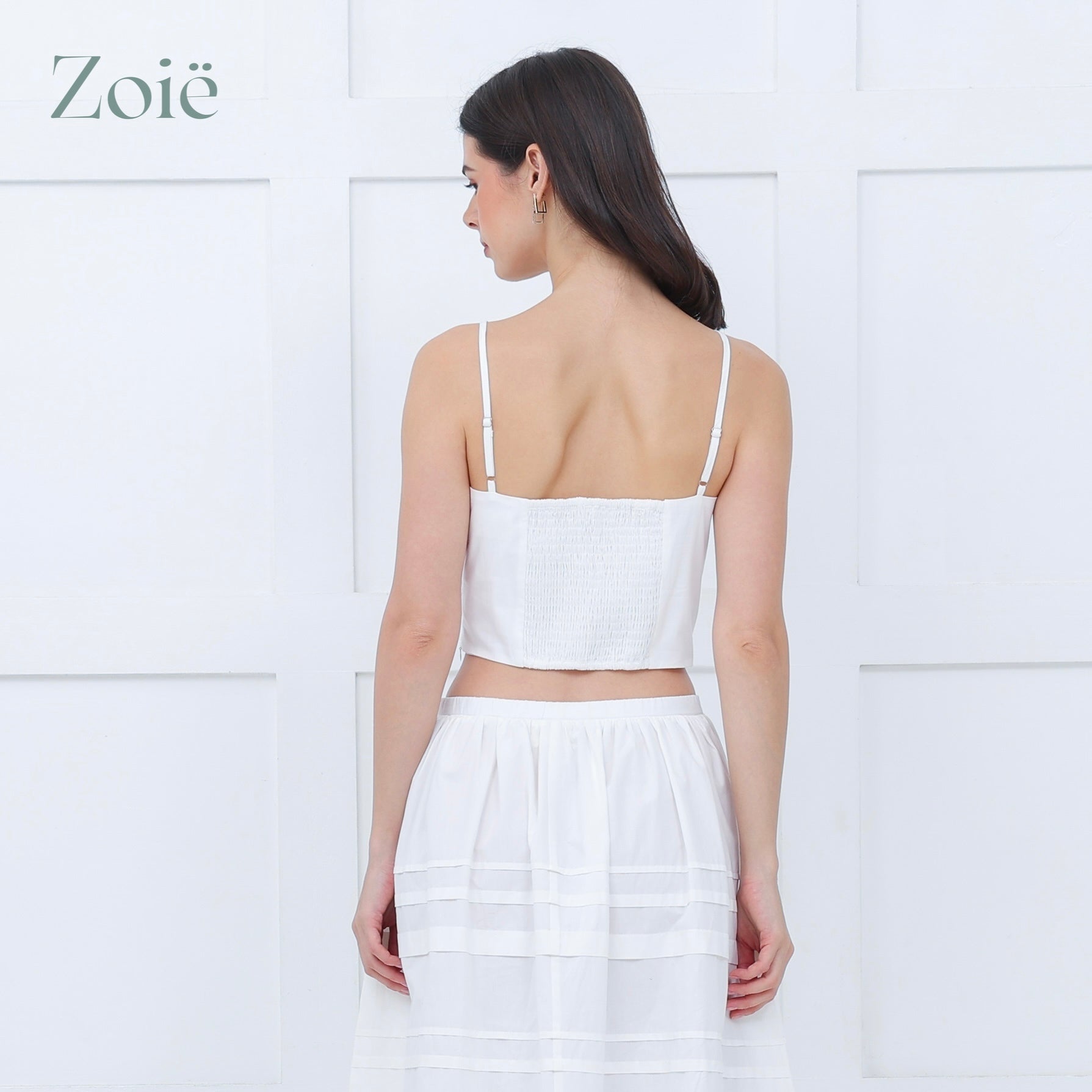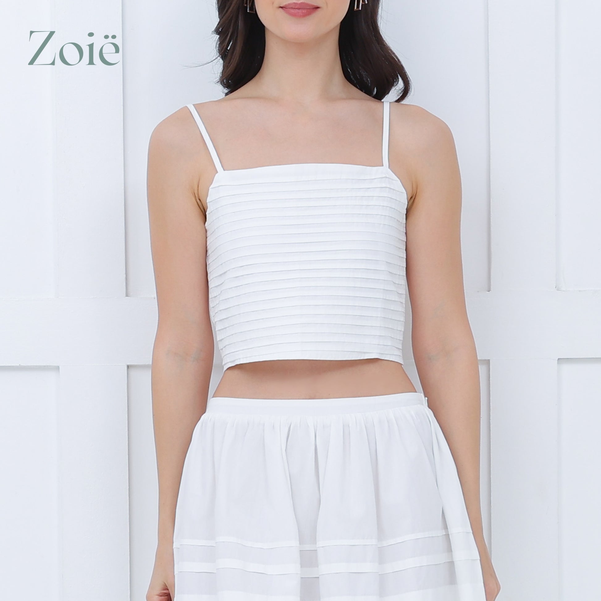 Spaghetti straps pleated top. Smocked center back. Adjustable straps.