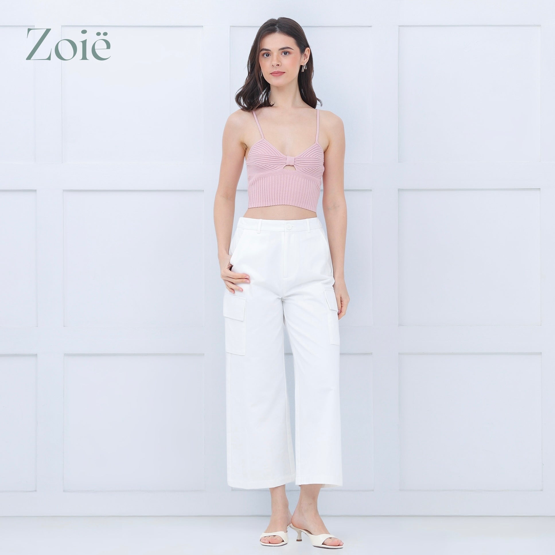 Ribbed knit bustier top with adjustable straps & hole on center chest.